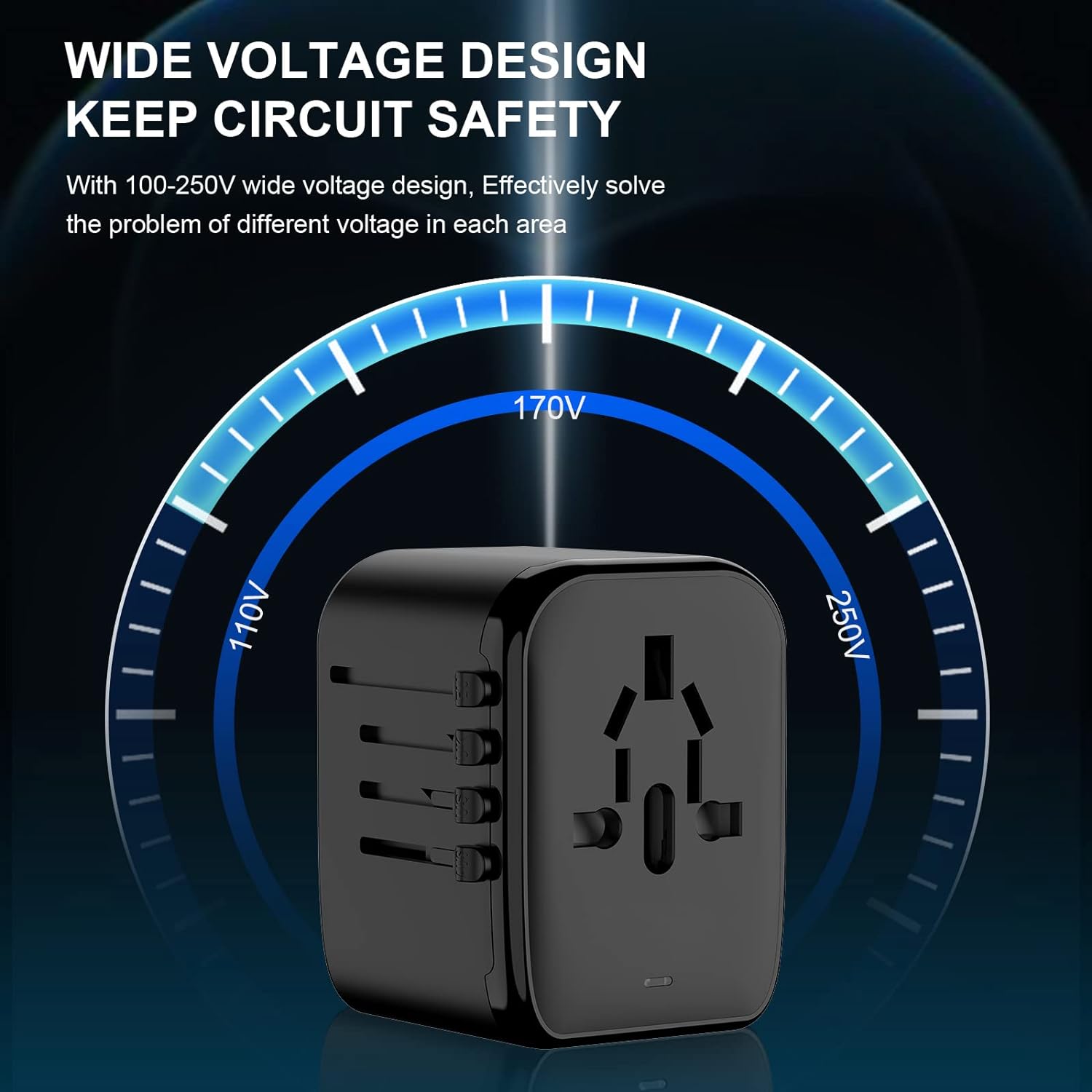 VYLEE Travel Adapter Worldwide: 5 in-1 world multi-function international Plug adapter that covers over 150 countries, such as the USA, Canada, Japan, UK, Ireland, Scotland, France, Germany, Italy, Spain, China, Australia, Argentina, New Zealand, etc