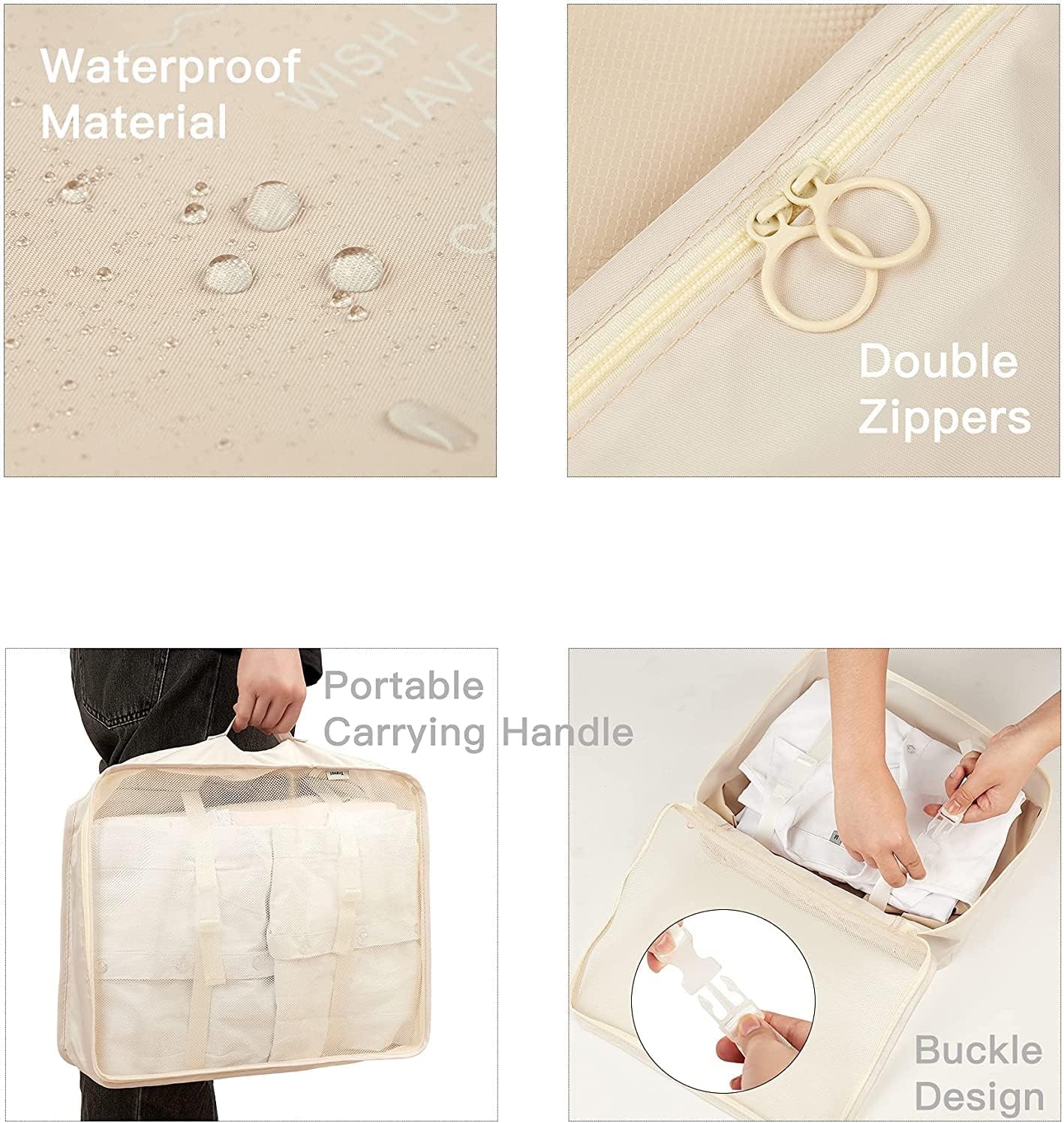 It allows you to easily store and organize your clothing that makes it easy to pack and even easier to unpack. very lightweight, The whole set weight: 460g, won’t add any weight to travel. Can be washed by machine or by hand.