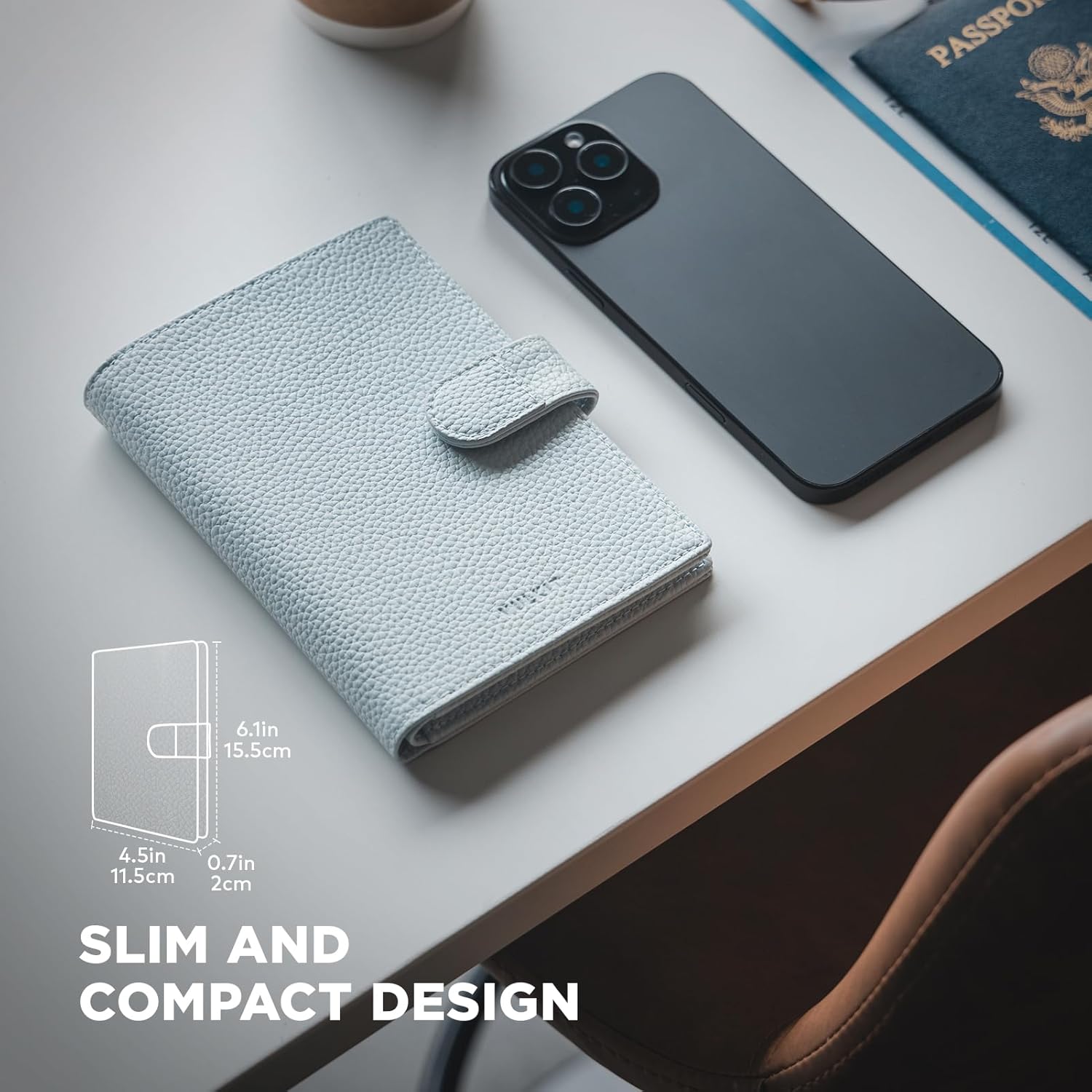 Slim Passport Holder- Measuring 6.1 x 4.7 x 0.78 inches and weighting only 0.26lb, the passport travel wallet with magnetic buckle is compact enough to your handheld or fit in your carry-on bag.