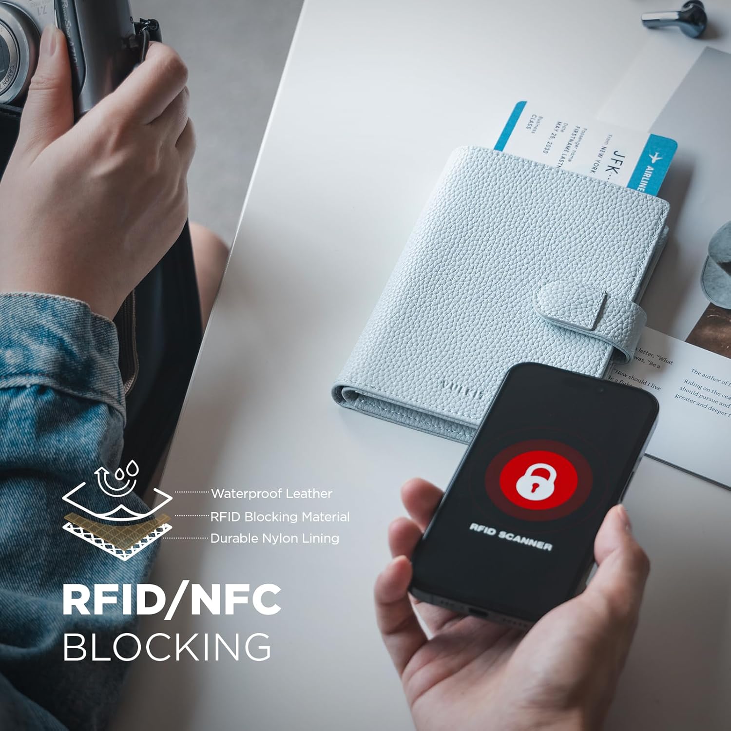 RFID/NFC Blocking Passport Wallet- Passport holder for women features advanced RFID/NFC blocking technology, protecting your valuable credit card information and travel documents from