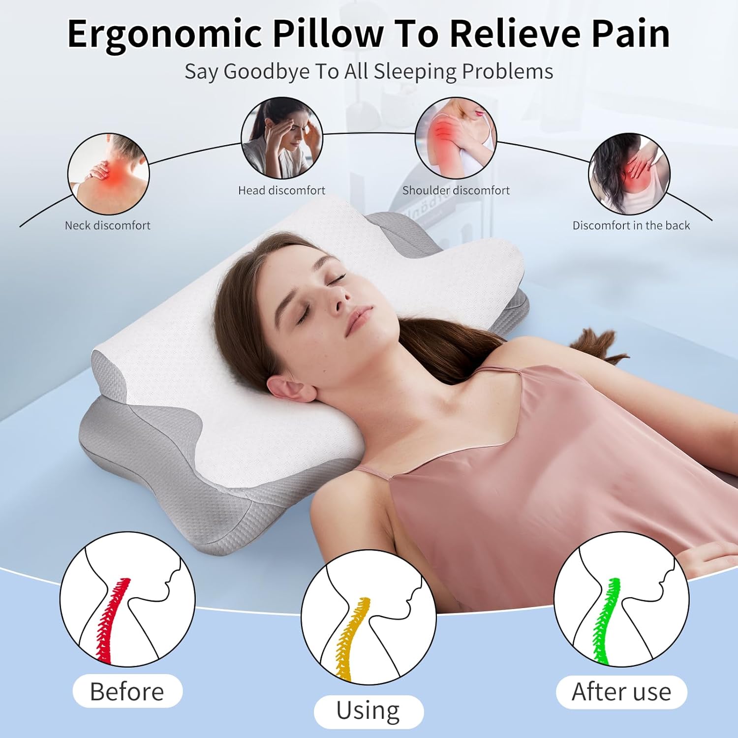 5.【Hassle-Free Customer Service】This is a perfect gift for your health. Choose this great neck pillow for pain relief, you may find that your sleep quality is unexpectedly improved, if you have any problems in using it you can always contact us, we will solve any problems for you within 24 hours.